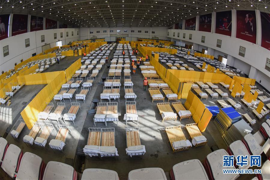 2月4日拍攝的正在加緊改造的武(wǔ)漢客廳方艙醫院。新華(huá)社記者 程敏 攝(shè)