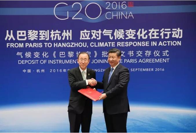 △2016年,習(xí)近平向潘基文(wén)交(jiāo)存中國(guó)氣候變化《巴黎協定》批準文書。